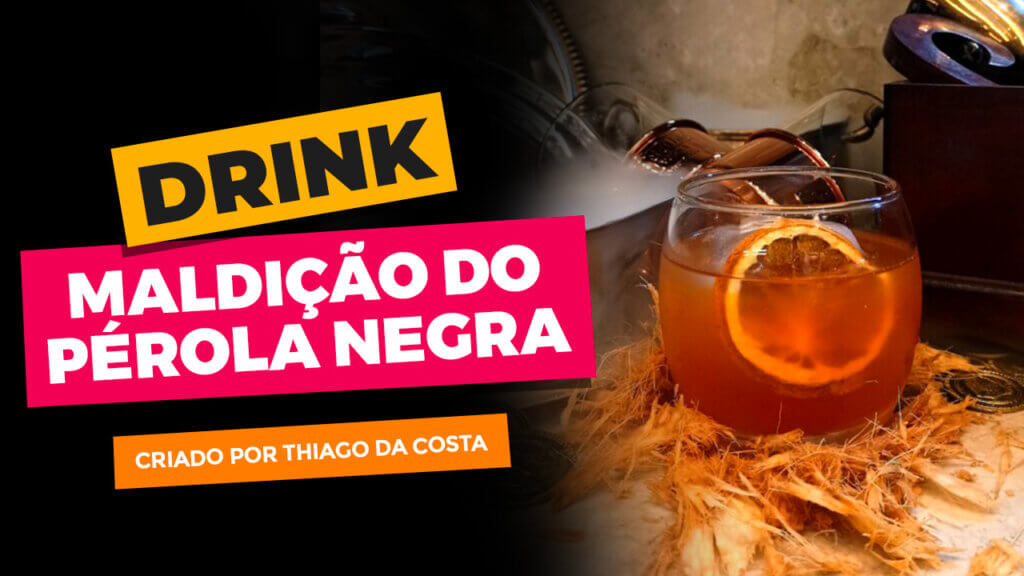 MALDIÇÃO DO PÉROLA NEGRA por Thiago da Costa DRINK VENCEDOR DA 1ª EDIÇÃO DABATALHA DOS DRINKEROS Receita: Descrição:O coquetel se assemelha ao Medalhão do Baú…